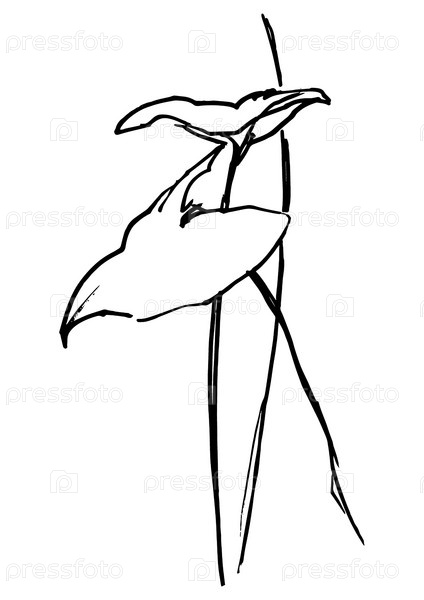 Фантастический рисунок растения и листьев. Эскиз листьев. Чернильный завод