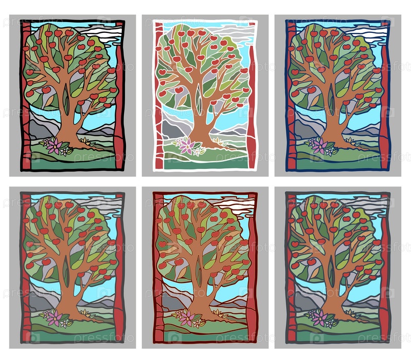 Набор картинок. Деревья Разные картинки с деревьями. Пейзаж с деревьями. Векторная иллюстрация
