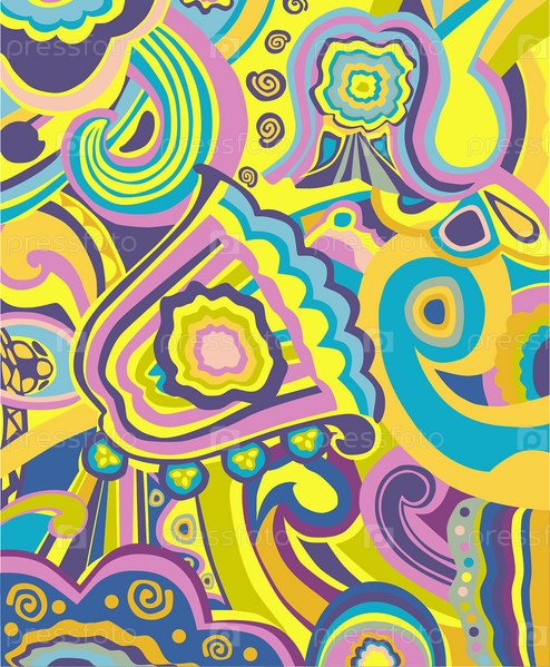 Векторная иллюстрация с цветами. Красивые разноцветные цветы. Цветы и растения на ярком фоне. Стилизованная композиция. Простые формы. Линейные формы. Разные цвета. Цветочная композиция