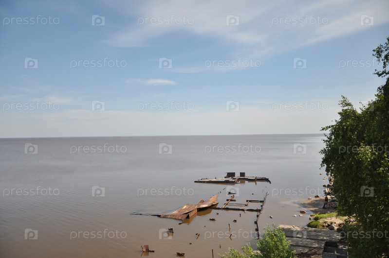 Набережная. Старый пирс. Летняя природа. Белозерск. Белое озеро. Россия