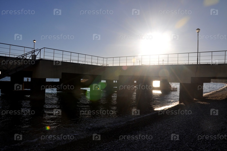 Закат в море. Морской берег вечером. Черное море. Абхазия