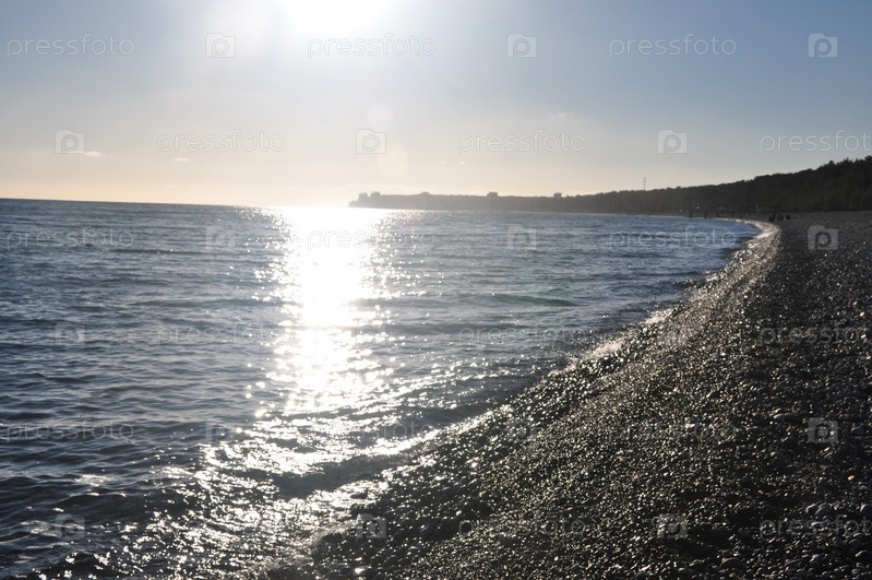 Закат в море. Морской берег вечером. Черное море. Абхазия