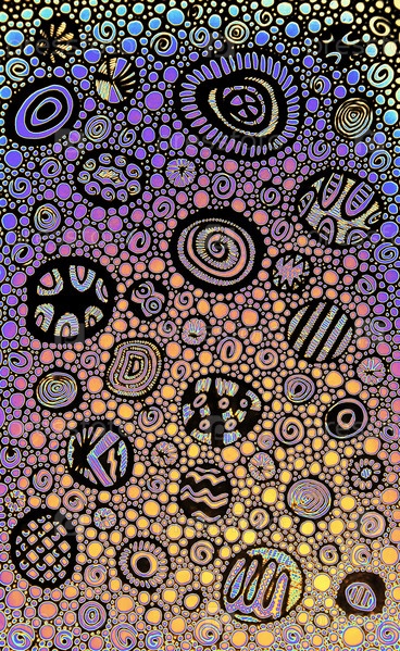 Фэнтезийный цветной фон из пузырей и кругов. Черно-цветная графика. Пузыри на заднем плане. Ракушки и круги на цветном фоне. Стилизованная композиция. Грязь, точки и пятна