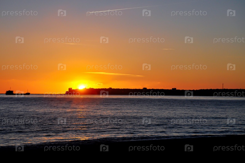 Закат в море. Морской берег вечером. Черное море. Абхазия