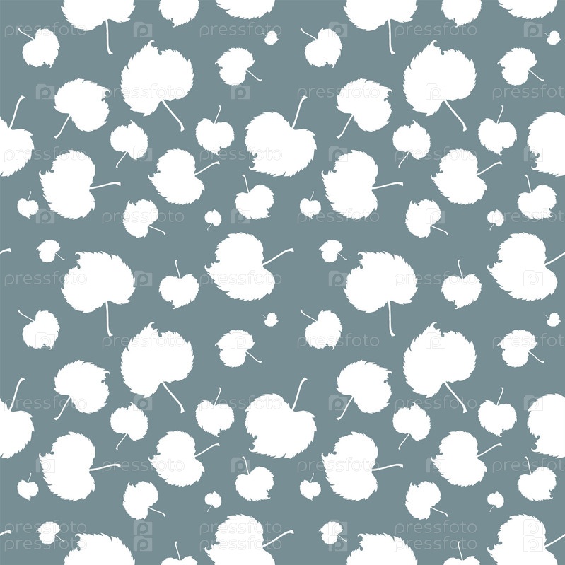 Узор с белыми листьями на сером фоне. Силуэты листьев. Векторная иллюстрация