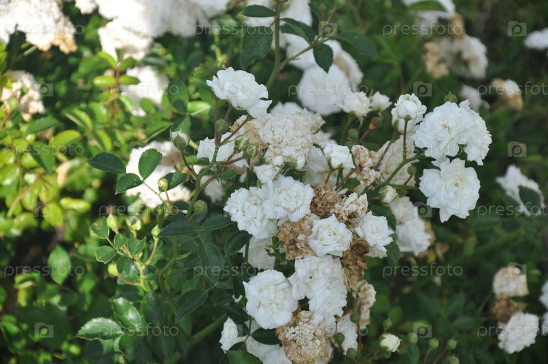 Красивые бутоны роз крупным планом. Белые цветы в саду