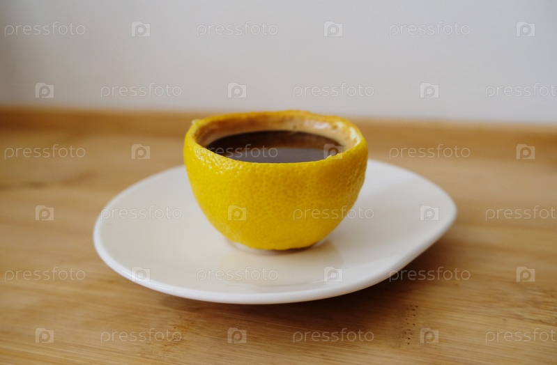 Креативная подача кофе эспрессо романо в чашке из свежего лимона