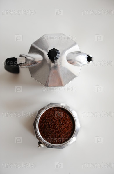 Итальянская кофеварка мока горшок на белом фоне вид сверху