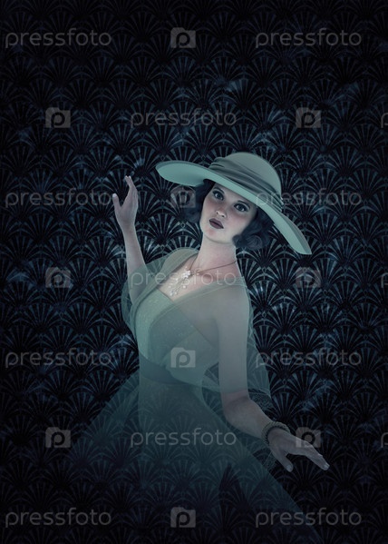 Женщина в стиле ретро в зеленом платье