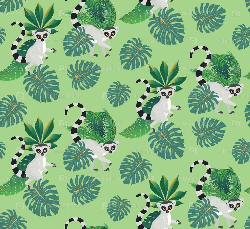 Лемур и тропические листья