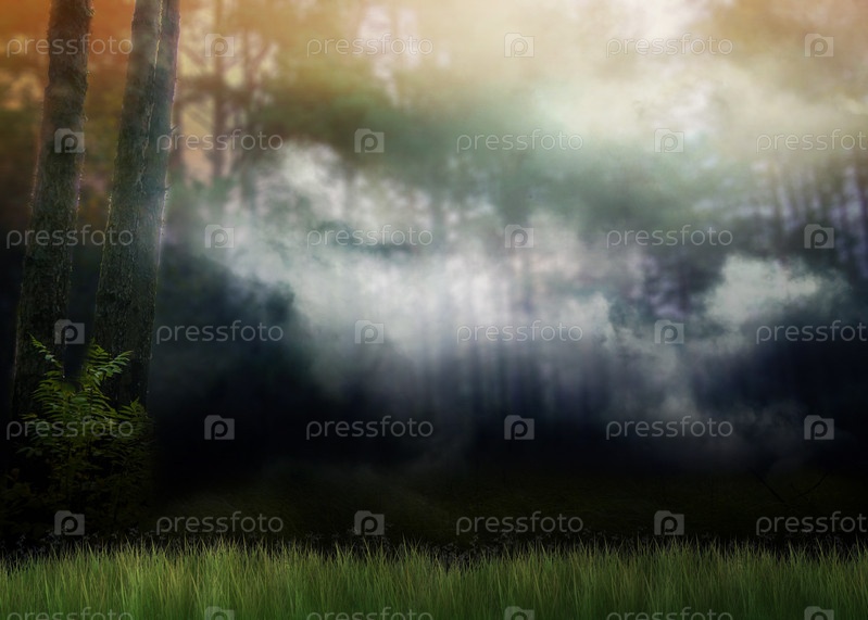 Темный фэнтезийный туманный лес