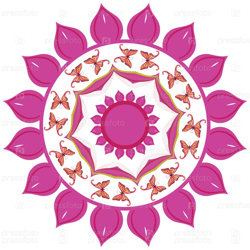 Цветочный круговой орнамент с бабочкой