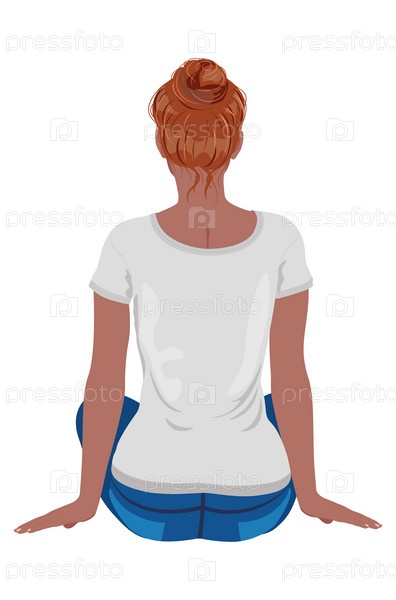 Сидящая девушка в серой футболке сзади
