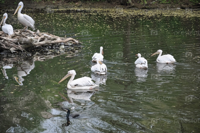 Стая пеликанов. Пеликаны на воде. Белые пеликаны. Семья пеликанов. Белые птицы. Птицы на озере. Птицы летом. Летнее время. Зоопарк животных. Животные парка