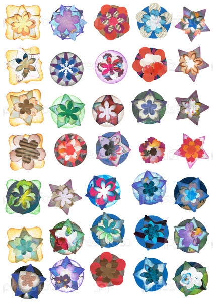 Элементы для скрапбукинга. Отдельные детали на белом фоне. Бумажные украшения для коллажей. Круги и звезды. Красивый декор для скрапбукинга
