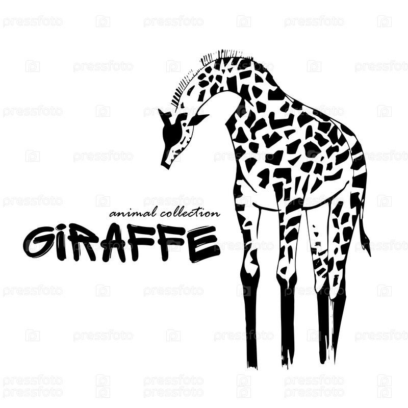 Силуэт жирафа. Голова и тело жирафа. Эскиз дикого животного. Зоопарк животных. Животное из Африки. Чернильный рисунок