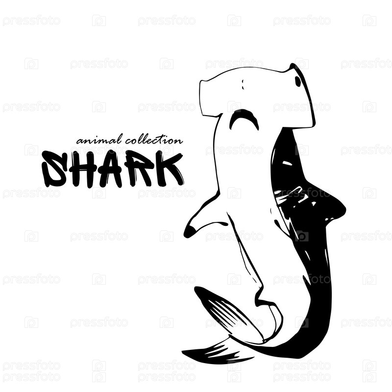 Силуэт акулы. Голова и тело акулы. Эскиз дикого животного океана. Рыба океана. Морское животное. Чернильный рисунок