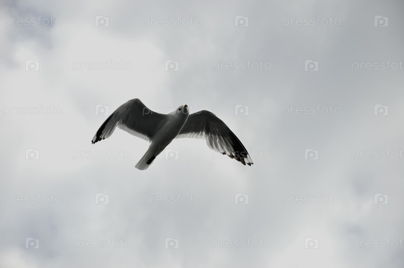 Чайка в небе. Летающая чайка. Белая птица. Птица над морем