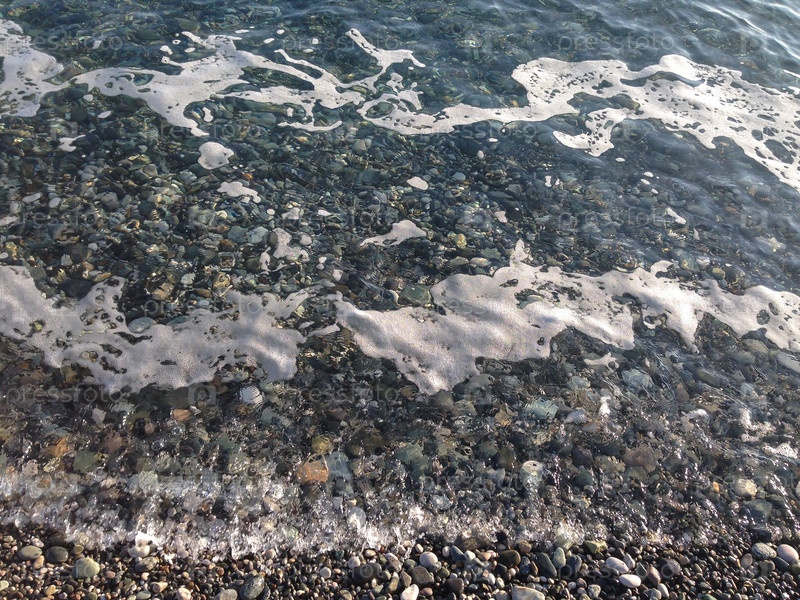 Морская стоимость. Морские волны. Песчаный берег. Прилив воды. Синие волны. Природа. Мелкие камни на берегу