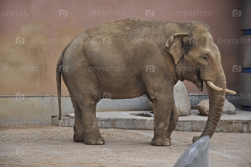 Коричневый слон. Слон в зоопарке. Слон ходит. Зоопарк животных. Животное Африки. Дикое животное