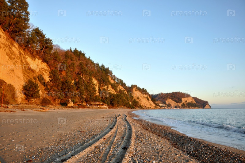 Закат в море. Морской берег вечером. Черное море. Абхазия
