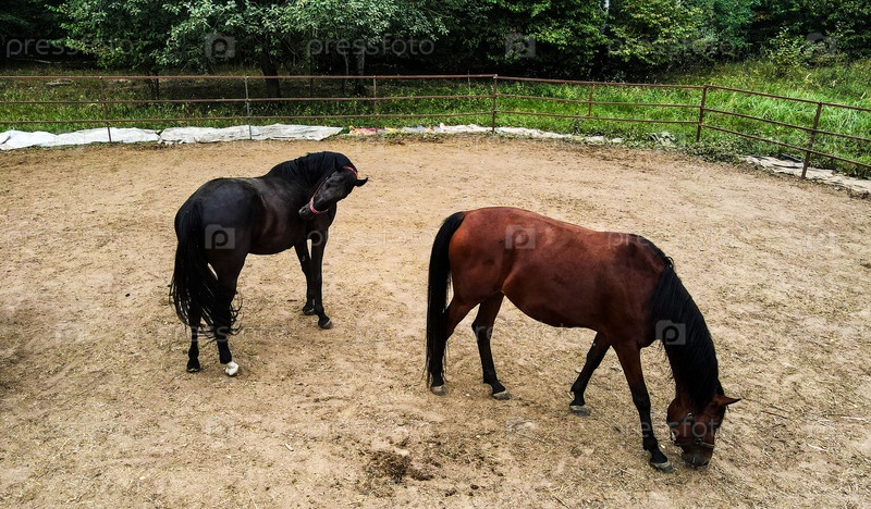 Летом лошади свободно гуляют в загоне