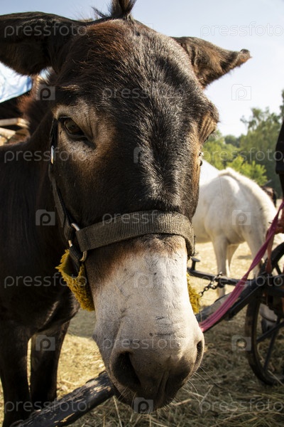 Портрет молодого осла с висячими ушами крупным планом