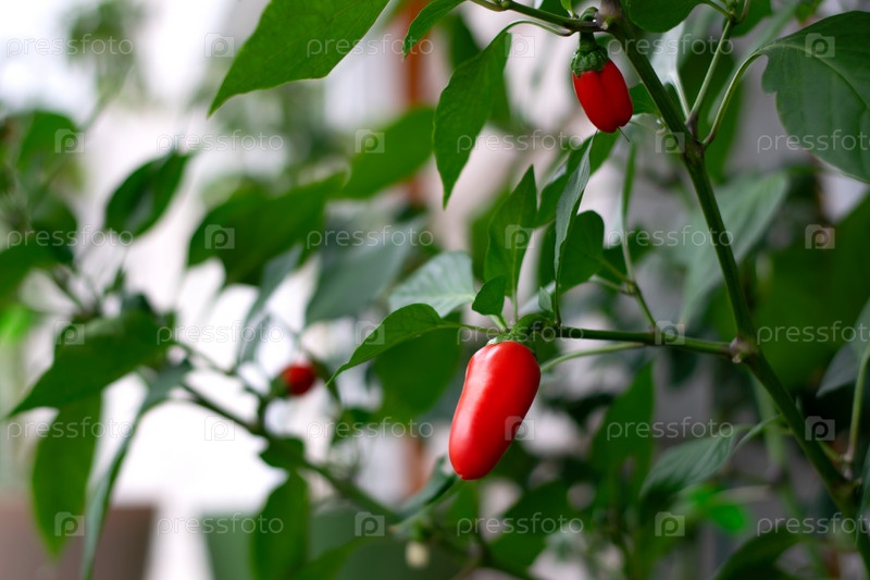 Сладкий мини-перец, растущий в горшке на подоконнике балкона. Урожай на оконной ферме