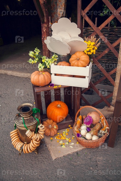 Декор для осенней фотосессии: тыква, цветы, речевой пузырь