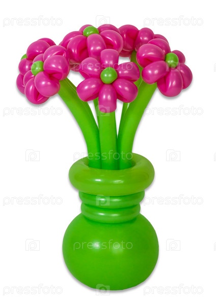 Воздушные шары, скрученные в цветущий букет цветов на белом фоне