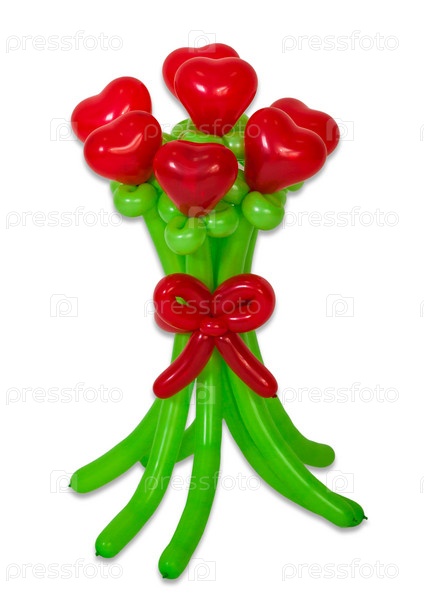 Воздушные шары, скрученные в цветущий букет цветов на белом фоне