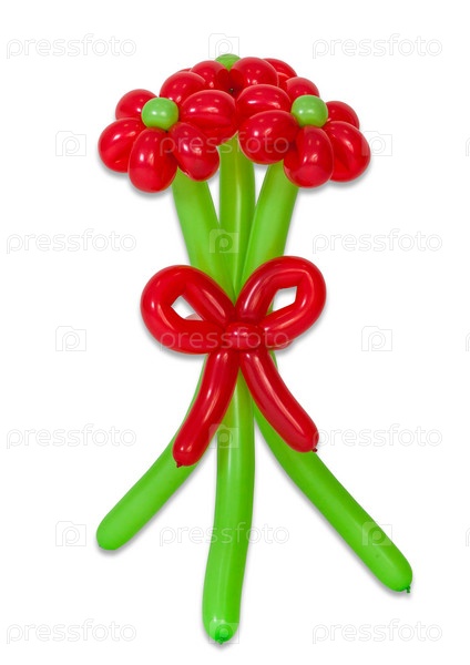 Воздушные шары, скрученные в цветущий букет цветов на белом фоне