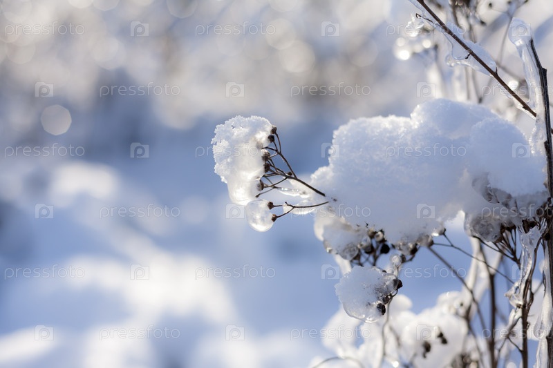 Замороженные ветки деревьев в солнечный день. Естественный зимний фон