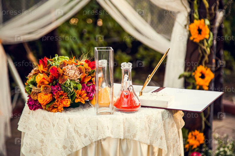 Свадебный ритуал с цветным песком. Осенние украшения для свадебной церемонии
