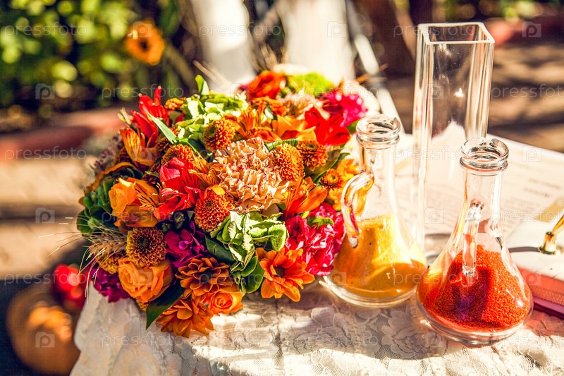Свадебный ритуал с цветным песком. Осенние украшения для свадебной церемонии