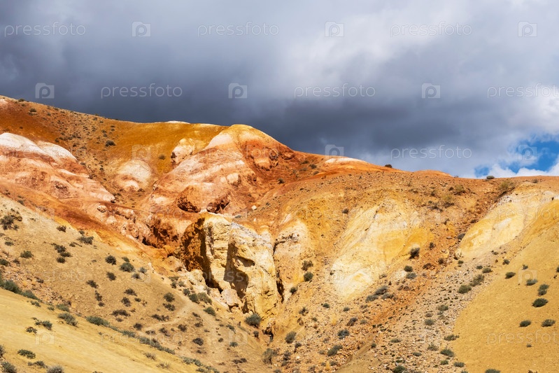 Красочные холмы в Республике Алтай, названные Марс 1. Фон окружающей среды природы. Естественная цветная текстура марсианского ландшафта из песчаника в горах Алтая