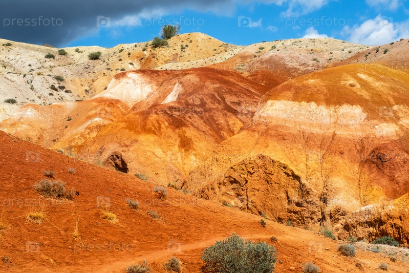 Красочные холмы в Республике Алтай, названные Марс 1. Фон окружающей среды природы. Естественная цветная текстура марсианского ландшафта из песчаника в горах Алтая