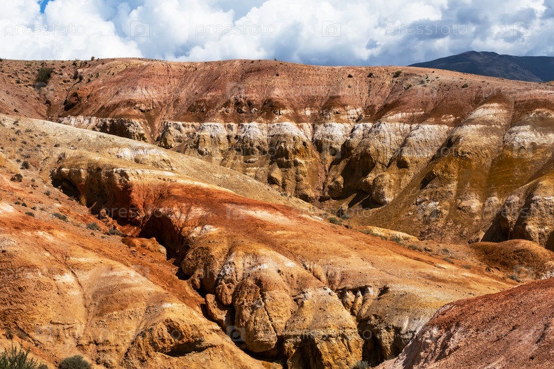 Красочные холмы в Республике Алтай, названные Марс 1. Фон окружающей среды природы. Естественная цветная текстура марсианского ландшафта из песчаника в горах Алтая