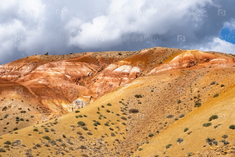 Красочные холмы в Республике Алтай, названные Марс 1. Фон окружающей среды природы. Естественная цветная текстура марсианского ландшафта из песчаника в горах Алтая