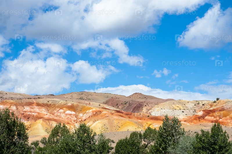 Красочные холмы в Республике Алтай, названные Марс 1. Фон окружающей среды природы. Естественная цветная текстура марсианского ландшафта из песчаника в горах Алтая