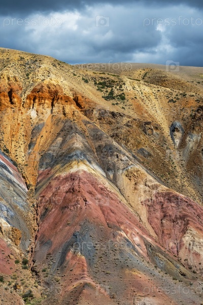 Красочные холмы в Республике Алтай, названные Марс 2. Фон окружающей среды природы. Естественная цветная текстура марсианского ландшафта из песчаника в горах Алтая
