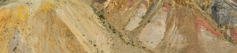 Красочные холмы в Республике Алтай под названием Марс 2. Фон окружающей среды, панорамный вид. Естественная цветная текстура марсианского ландшафта из песчаника в горах Алтая