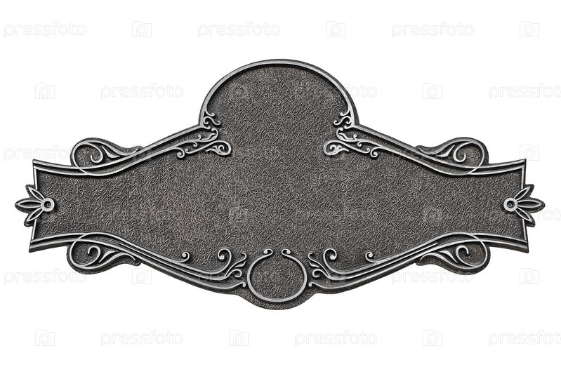 Винтажная литая металлическая пластина на белом фоне
