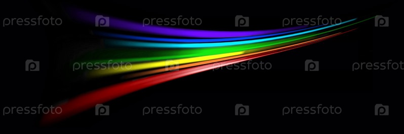 Динамические разноцветные светящиеся линии на черном фоне