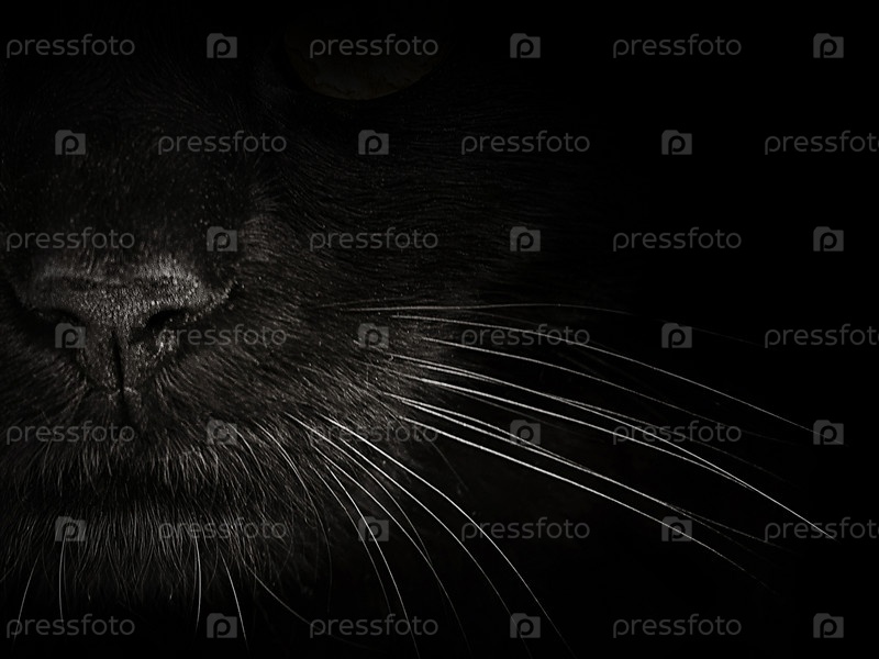 Темная морда кота крупным планом. передний план