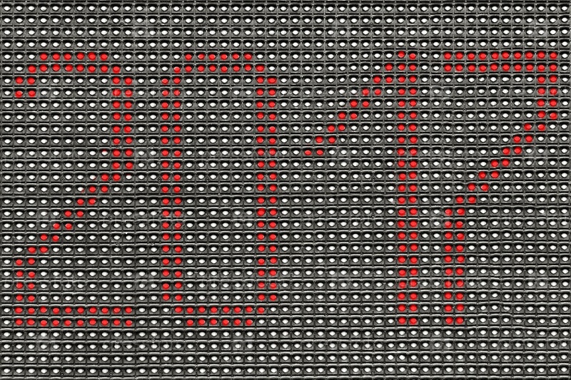 Светодиодная цифровая информационная матрица крупным планом. Фон