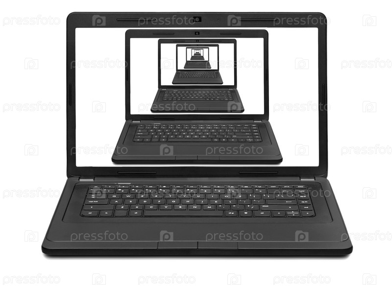 Перспектива ноутбуков на экране ноутбука, изолированные на белом фоне