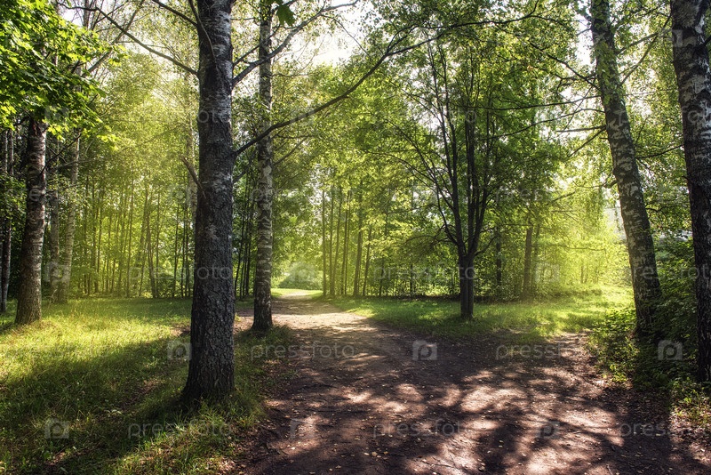 Развилка сельских дорог на опушке леса