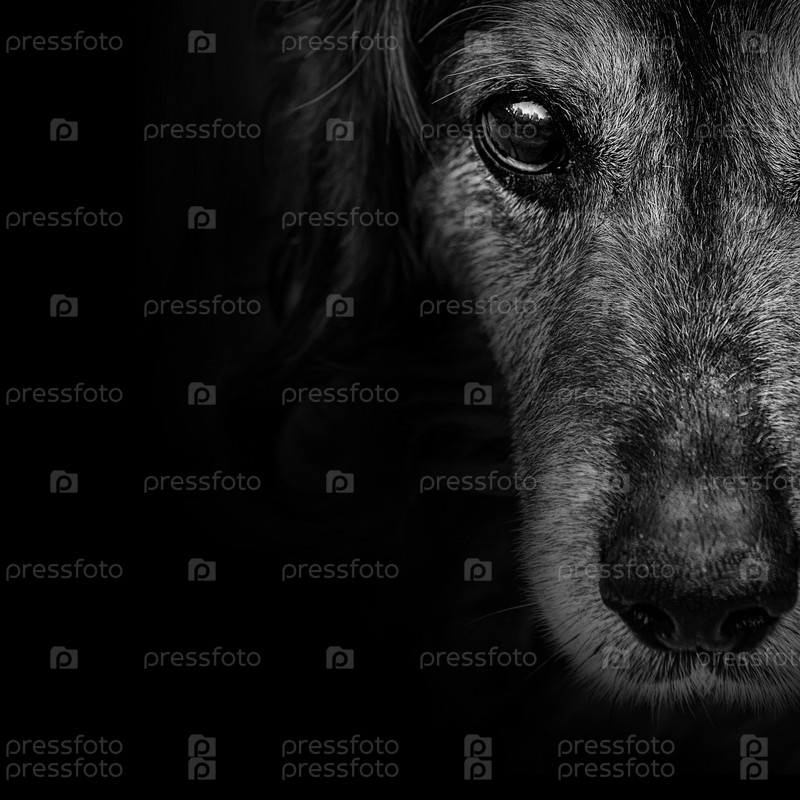 Темная морда спаниеля собака крупным планом. передний план