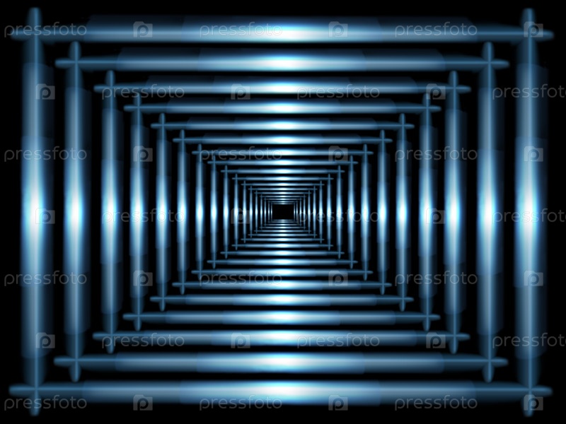 Абстрактный фон с перспективой синих светящихся линий на черном